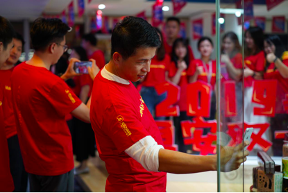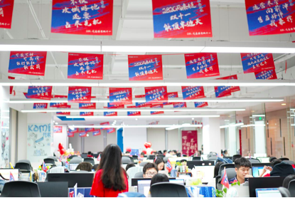 10号晚上电商办公室也组织了一场别具生面的“我在CA88双十一”文化活动为双十一销售助威,运营中心副总裁许清池,共享中心副总裁刘莹,女性健康产业发展部总裁许自淡等集团多位领导也赶赴现场,在零点时一同等待双十一销售拉开序幕。